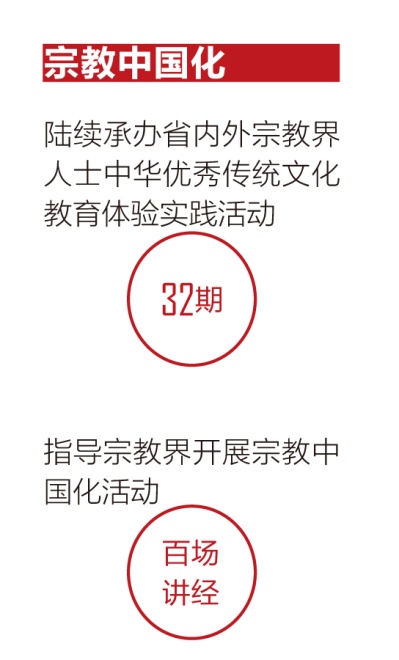 山東不斷創(chuàng)新探索宗教中國化的形式和內(nèi)容,教育引導(dǎo)宗教界人士和信教群眾培育和踐行社會主義核心價值觀、弘揚(yáng)中華優(yōu)秀傳統(tǒng)文化,不斷增進(jìn)“五個認(rèn)同”。加強(qiáng)理論研究,發(fā)揮儒家文化發(fā)祥地和紅色文化富集地優(yōu)勢,成立山東省民族宗教研究會、山東宗教界優(yōu)秀傳統(tǒng)文化教育實(shí)踐基地,先后舉辦“儒學(xué)與宗教中國化”研討會、宗教中國化座談會等活動。強(qiáng)化教育引導(dǎo),陸續(xù)承辦了32期省內(nèi)外宗教界人士中華優(yōu)秀傳統(tǒng)文化教育體驗實(shí)踐活動,指導(dǎo)宗教界開展了宗教中國化“百場講經(jīng)”活動,常態(tài)化抓好宗教場所“四進(jìn)”活動,努力推動宗教教義與齊魯文化有機(jī)融合,取得了春風(fēng)化雨、潤物無聲的良好效果。