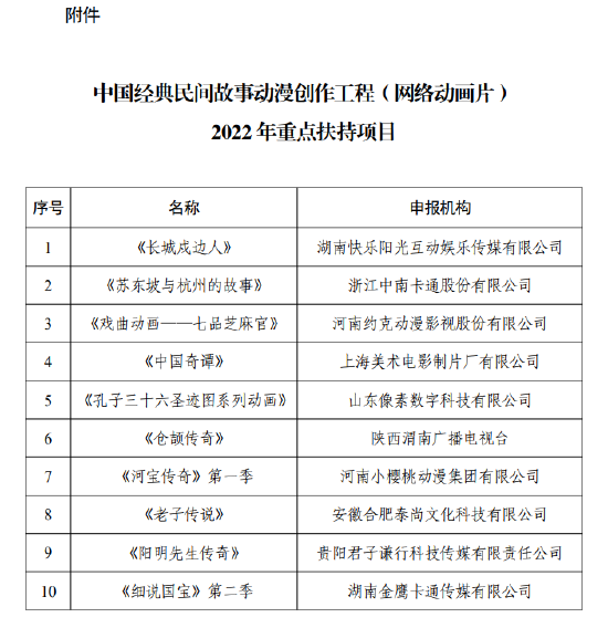 國家廣電總局:確定10部網(wǎng)絡(luò)動畫片為2022年重點(diǎn)扶持項(xiàng)目