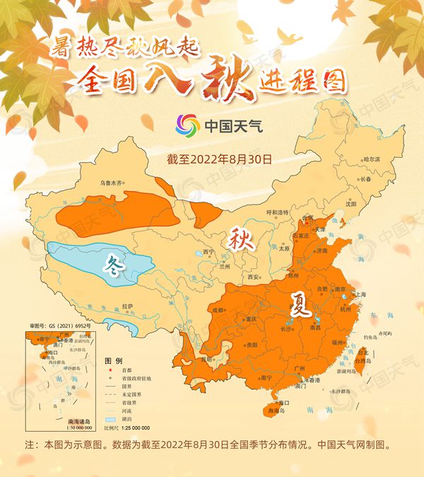 從最新的全國入秋進(jìn)程圖來看,截至8月30日,我國東北地區(qū)、西北地區(qū)大部以及華北西部和北部地區(qū)已經(jīng)邁入了秋天的“門檻”,秋季前沿抵達(dá)河北北部、山西、陜西南部至甘肅南部一線。大城市中,哈爾濱、長春、沈陽、呼和浩特、銀川、烏魯木齊、蘭州、太原等地已經(jīng)入秋。