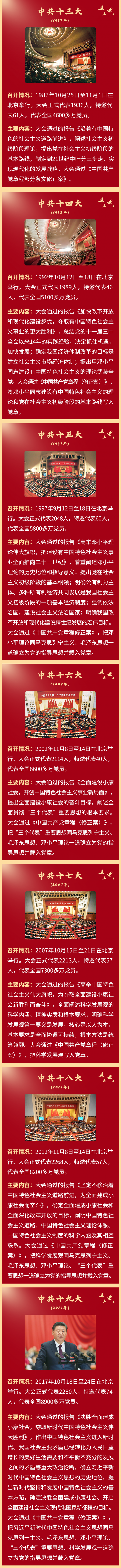 黨的二十大即將隆重開(kāi)幕。此次會(huì)議是在全黨全國(guó)各族人民邁上全面建設(shè)社會(huì)主義現(xiàn)代化國(guó)家新征程、向第二個(gè)百年奮斗目標(biāo)進(jìn)軍的關(guān)鍵時(shí)刻召開(kāi)的一次十分重要的大會(huì)。黨建網(wǎng)微平臺(tái)依據(jù)《中國(guó)共產(chǎn)黨一百年大事記》整理了黨的一大至十九大“極簡(jiǎn)史”,邀您一起學(xué)習(xí)了解中國(guó)共產(chǎn)黨歷次全國(guó)代表大會(huì)概況。