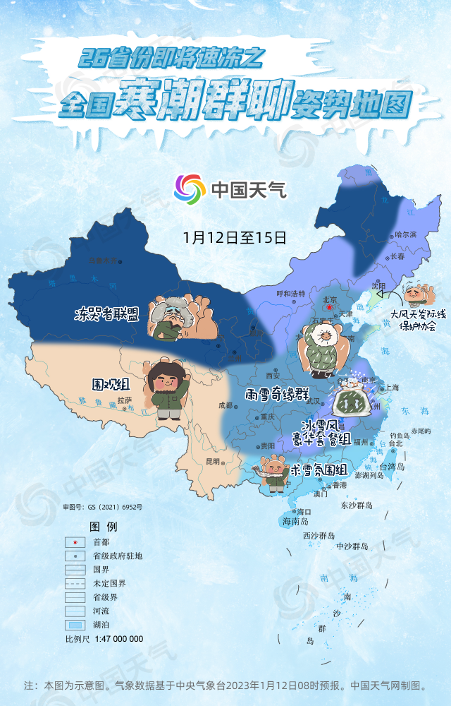 1月12日,2023年首場寒潮已抵達內(nèi)蒙古一帶,未來幾天將大舉南下橫掃我國大部,中央氣象臺已升級發(fā)布寒潮黃色預警,約26省區(qū)市即將加入寒潮群聊。哪里將加入“凍哭者聯(lián)盟”?哪里將獲得“冰雪風超級豪華套餐”?哪里與雪無緣默默充當“求雪氛圍組”?中國天氣網(wǎng)推出全國寒潮群聊姿勢地圖,請各位對號入座掃碼進群!