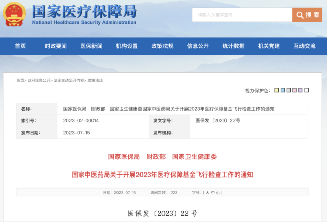 國家醫(yī)保局、財政部、國家衛(wèi)生健康委、國家中醫(yī)藥局14日聯(lián)合印發(fā)《關于開展2023年醫(yī)療保障基金飛行檢查工作的通知》,將在全國范圍內組織開展2023年醫(yī)?;痫w行檢查。