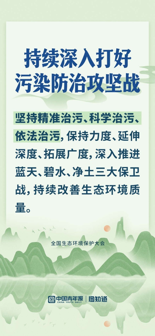 近日舉行的全國生態(tài)環(huán)境保護(hù)大會(huì)指出,今后5年是美麗中國建設(shè)的重要時(shí)期,要把建設(shè)美麗中國擺在強(qiáng)國建設(shè)、民族復(fù)興的突出位置,以更高站位、更寬視野、更大力度來謀劃和推進(jìn)新征程生態(tài)環(huán)境保護(hù)工作。這也是時(shí)隔5年,我國再次召開高規(guī)格生態(tài)環(huán)保大會(huì),布局美麗中國建設(shè)。未來有哪些重點(diǎn)工作,讀圖了解。