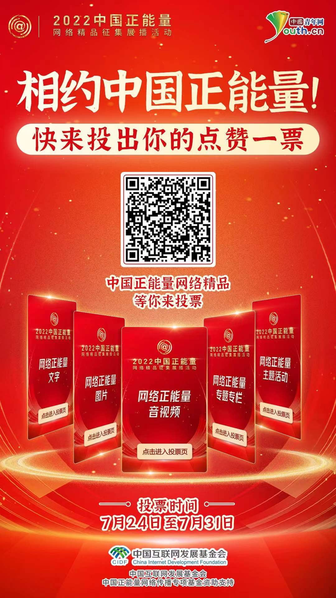 2022中國正能量網(wǎng)絡(luò)精品征集展播活動啟動網(wǎng)絡(luò)展播投票。約1100件作品從報送作品中脫穎而出進入終選,它們謳歌偉大時代、樹立中國榜樣、點贊砥礪足音,營造清朗的網(wǎng)絡(luò)空間。網(wǎng)絡(luò)展播投票已接近尾聲,邀請廣大網(wǎng)友在線投出點贊一票,于正能量作品中汲取澎湃動能。(潘曉文 朱鈞有)