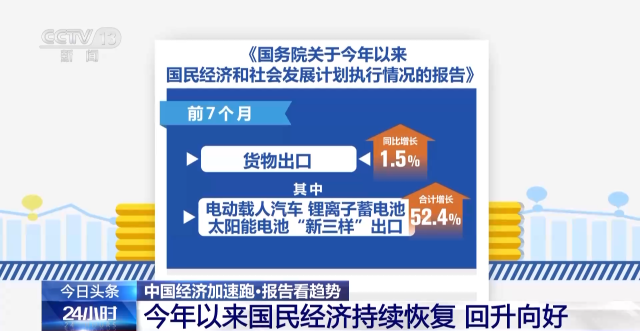 報告指出,前7個月貨物出口同比增長1.5%,其中電動載人汽車、鋰離子蓄電池、太陽能電池“新三樣”出口合計增長52.4%。知識密集型服務(wù)貿(mào)易較快增長,旅行服務(wù)貿(mào)易明顯恢復(fù),上半年服務(wù)進(jìn)出口同比增長8.5%。推動外資標(biāo)志性項目落地實施,外貿(mào)外資平穩(wěn)發(fā)展。