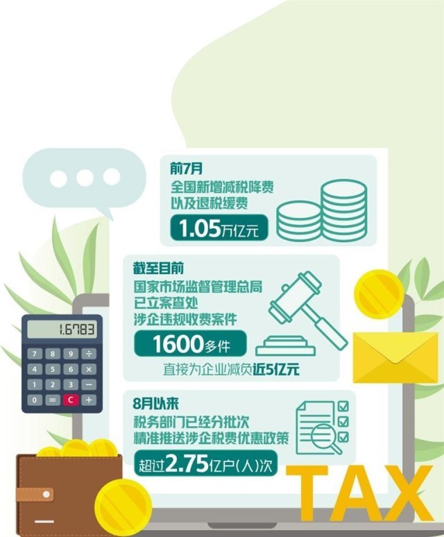 最新數(shù)據(jù)顯示,前7月,全國新增減稅降費以及退稅緩費1.05萬億元。今年以來,我國聚焦支持做強做優(yōu)實體經(jīng)濟、促增收擴消費、推動高水平科技自立自強、支持戰(zhàn)略性新興產(chǎn)業(yè)發(fā)展等多方面舉措,打出一套稅費政策組合拳,實打實支持企業(yè)紓困發(fā)展。