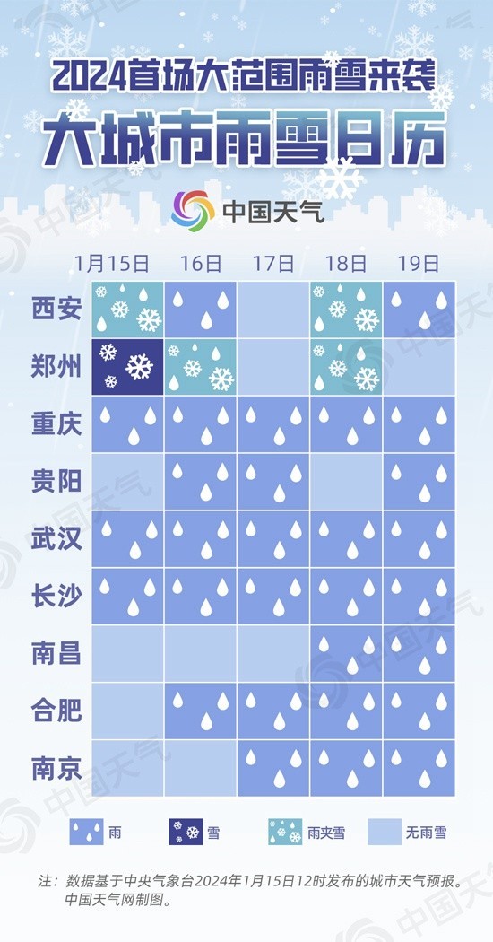 2024年首場大范圍雨雪日歷出爐 武漢重慶等地開啟陰雨周