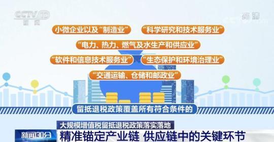 據(jù)介紹,今年實(shí)施的大規(guī)模增值稅留抵退稅政策與前期政策相比,主要聚焦小微企業(yè)和重點(diǎn)行業(yè)。留抵退稅政策覆蓋所有符合條件的小微企業(yè)以及“制造業(yè)”“科學(xué)研究和技術(shù)服務(wù)業(yè)”“電力、熱力、燃?xì)饧八a(chǎn)和供應(yīng)業(yè)”“軟件和信息技術(shù)服務(wù)業(yè)”“生態(tài)保護(hù)和環(huán)境治理業(yè)”和“交通運(yùn)輸、倉(cāng)儲(chǔ)和郵政業(yè)”,精準(zhǔn)錨定國(guó)民經(jīng)濟(jì)運(yùn)行和產(chǎn)業(yè)鏈、供應(yīng)鏈中的關(guān)鍵環(huán)節(jié)。
