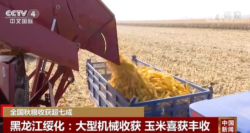 全國秋糧收獲超七成 進度同比快2.6個百分點
