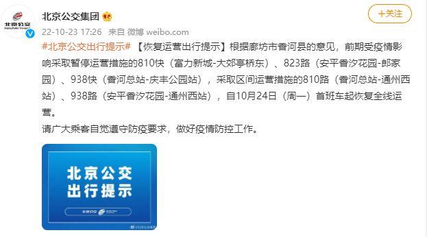 廊坊香河至北京多條公交線將恢復(fù)全線運(yùn)營