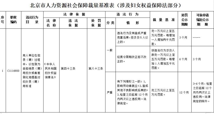中新網(wǎng)2月3日電 北京市人力資源和社會保障局近日發(fā)布關(guān)于印發(fā)《北京市人力資源社會保障行政處罰裁量基準(zhǔn)表(涉及婦女權(quán)益保障法部分)》的通知,其中明確,用人單位在招錄(聘)過程中,以性別為由拒絕錄(聘)用婦女或者差別化地提高對婦女錄(聘)用標(biāo)準(zhǔn),或因結(jié)婚、懷孕、產(chǎn)假、哺乳等,降低女職工的工資和福利待遇等行為,最高可處五萬元罰款。(中新財(cái)經(jīng))