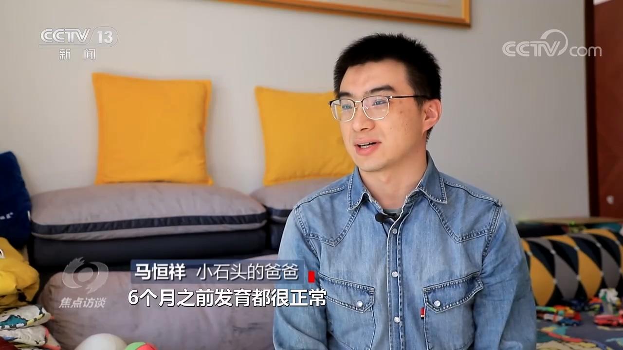 小石頭的爸爸馬恒祥:“6個月之前發(fā)育都很正常,像抬頭、翻身、坐都沒有問題,但是在8個月左右的時候,發(fā)現(xiàn)他的腿在躺著的時候不會動了,坐也坐不住了?!?/p>
