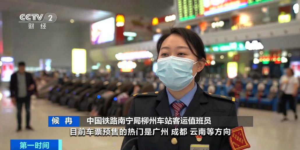 中國鐵路南寧局柳州車站客運值班員 候冉:目前車票預售的熱門是廣州、成都、云南等方向。預計整個五一假期,柳州站增加南寧、賀州等方向6趟車。