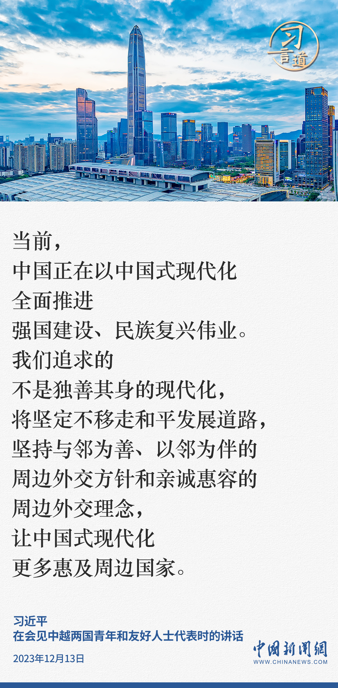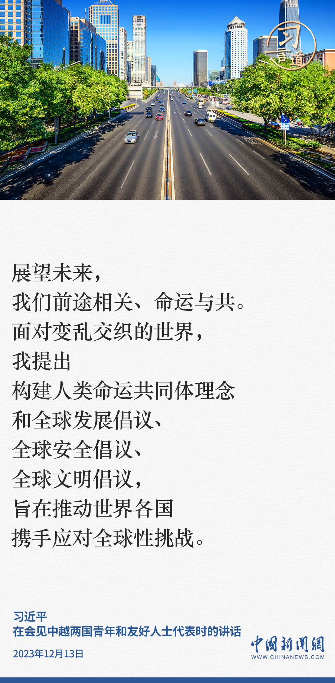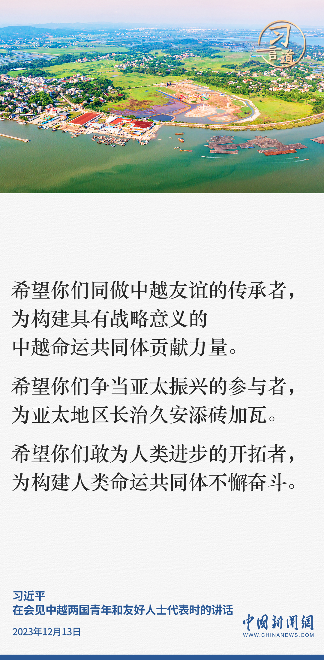 當(dāng)?shù)貢r(shí)間12月13日下午,中共中央總書記、國家主席習(xí)近平和夫人彭麗媛在河內(nèi)同越共中央總書記阮富仲夫婦共同會(huì)見中越兩國青年和友好人士代表。習(xí)近平指出——