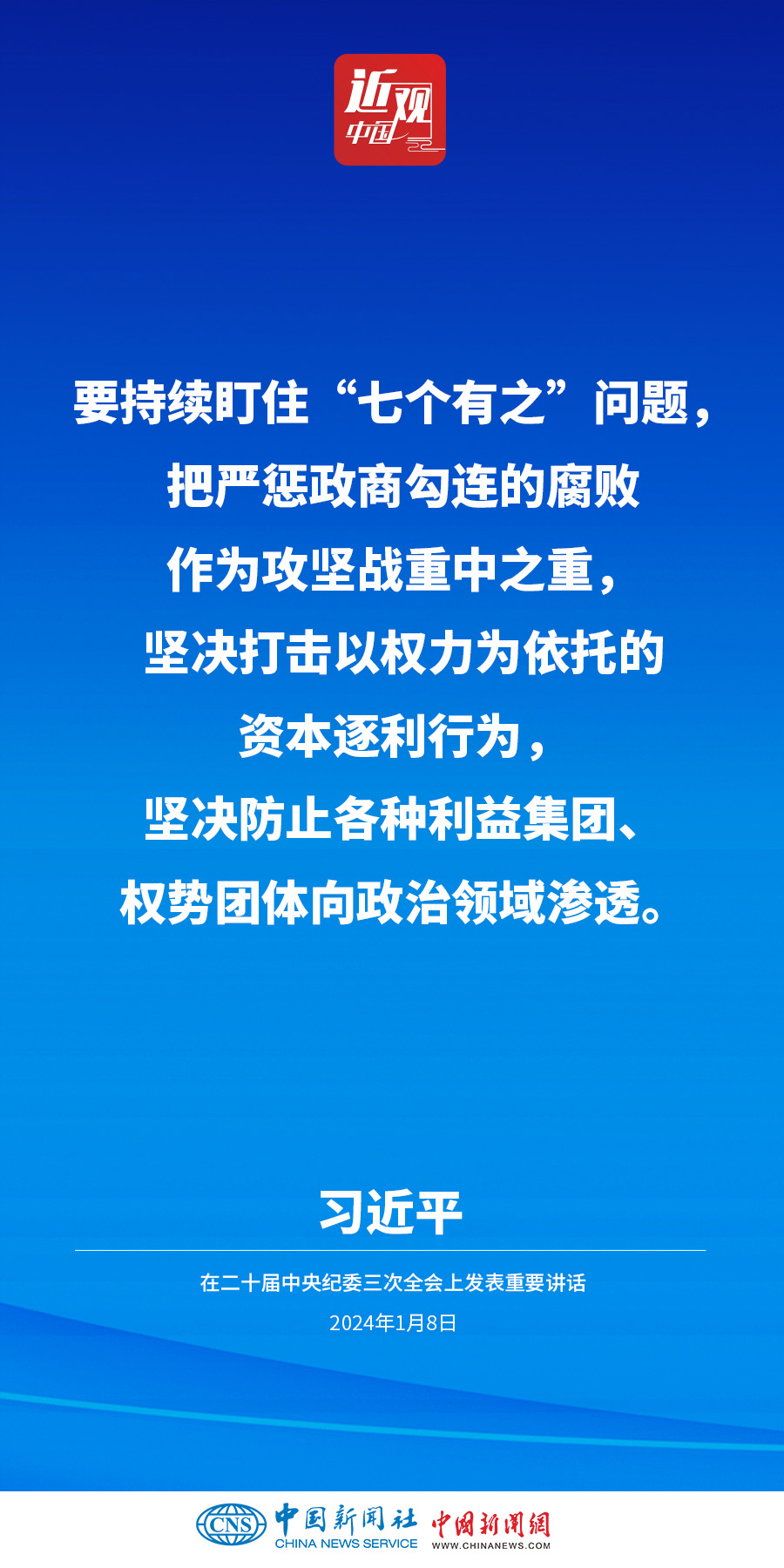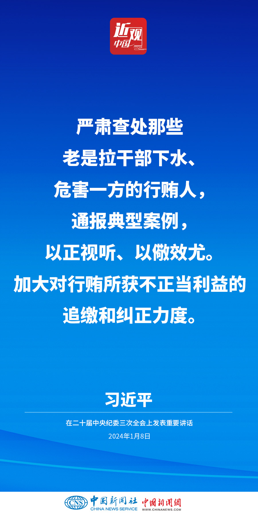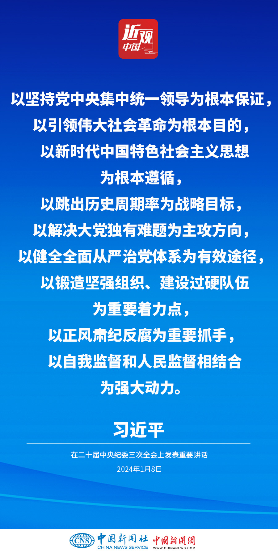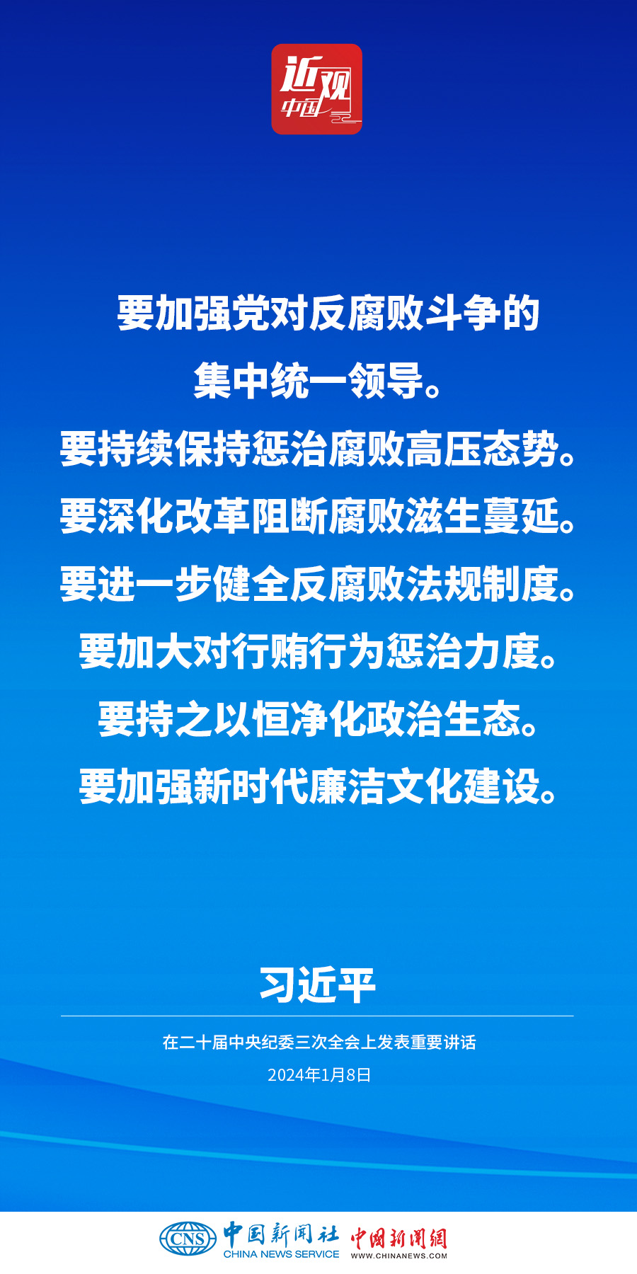 中共中央總書記、國(guó)家主席、中央軍委主席習(xí)近平8日上午在中國(guó)共產(chǎn)黨第二十屆中央紀(jì)律檢查委員會(huì)第三次全體會(huì)議上發(fā)表重要講話。他強(qiáng)調(diào)——