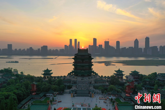 圖為2021年5月2日, 位于江西南昌贛江之畔的江南名樓滕王閣迎來眾多游客。(無人機(jī)照片) 中新社記者 劉占昆 攝