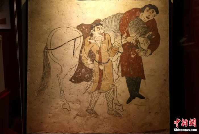 陜西歷史博物館展出的胡人牽馬圖壁畫。張遠 攝