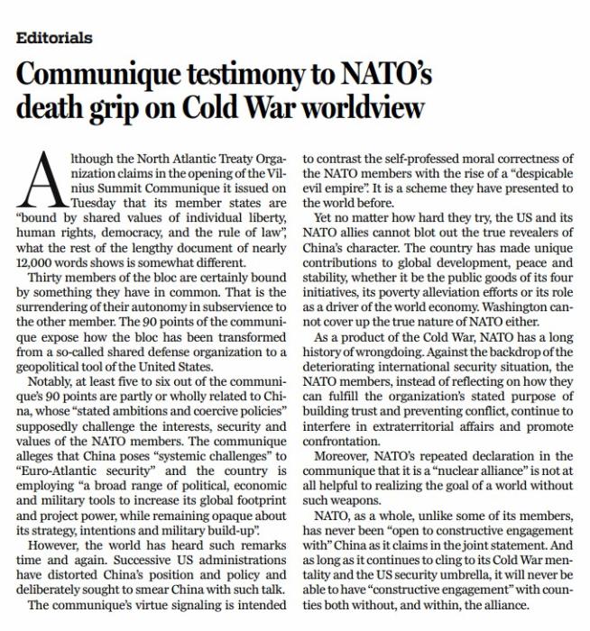 原標(biāo)題:Communique testimony to NATO’s death grip on Cold War worldview