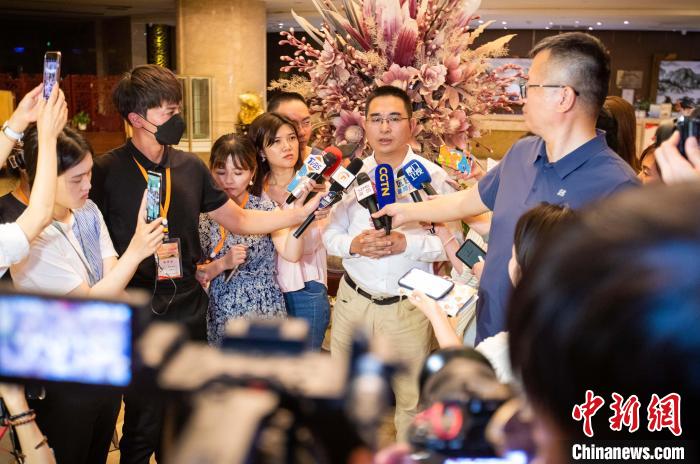 7月18日晚,國(guó)臺(tái)辦新聞局副局長(zhǎng)陳斌華在甘肅金昌接受兩岸及香港媒體采訪?!≈行律缬浾?李雪峰 攝