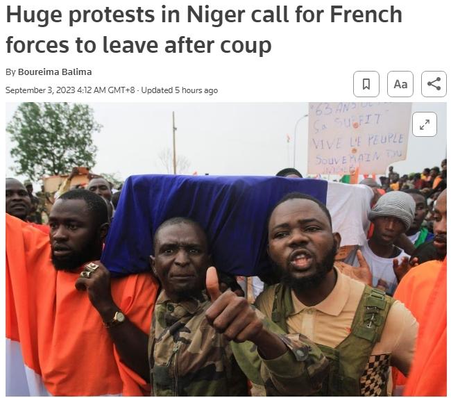 報(bào)道稱,這是尼日爾發(fā)生軍事政變以來規(guī)模最大的一場(chǎng)示威集會(huì)。不過截至當(dāng)天傍晚,沒有發(fā)生明顯的暴力事件。