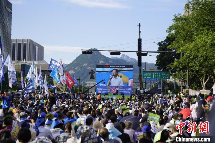 9月2日下午,韓國在野黨與市民團(tuán)體在首爾市中心再次舉行大規(guī)模集會,強(qiáng)烈要求日本政府停止福島核污染水排海行為。圖為集會現(xiàn)場。 中新社記者 劉旭 攝
