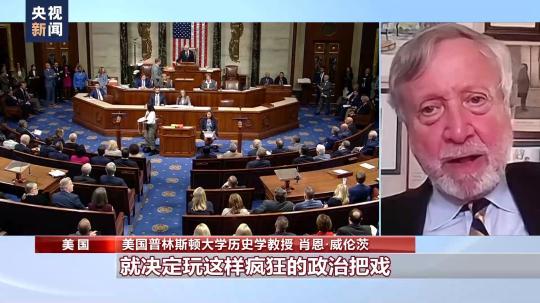 美國(guó)普林斯頓大學(xué)歷史學(xué)教授 肖恩·威倫茨:他們想要消滅“自己人”,共和黨很久以前,20世紀(jì)九十年代就決定玩這樣瘋狂的政治把戲,還經(jīng)常成功,而現(xiàn)在罷免議長(zhǎng)已經(jīng)不是我能討論的。因?yàn)槲已芯康氖菤v史,歷史上從來沒出現(xiàn)過現(xiàn)在的情況。他們瘋了,想要盡可能制造混亂。