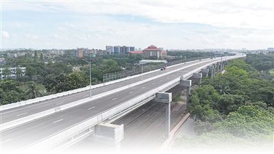 由中國山東高速集團主導(dǎo)投資建設(shè)運營的孟加拉國首條高架快速路——達卡機場高架快速路項目(一期)通車儀式9月2日在孟加拉國首都達卡舉行。項目通車后極大改善了達卡市區(qū)交通狀況。圖為孟加拉國達卡機場高架快速路項目(一期)遠景。本報記者 孫廣勇攝
