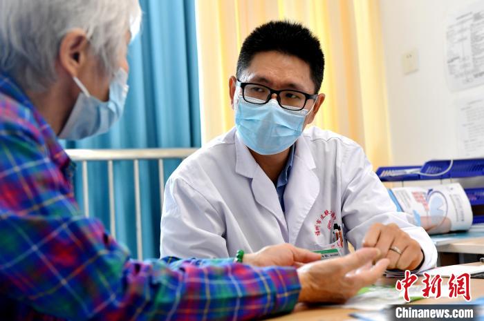 10月9日,現就職于福州市皮膚病防治院的臺籍醫(yī)生陳柏叡在與一名患者交流。 中新社記者 呂明 攝