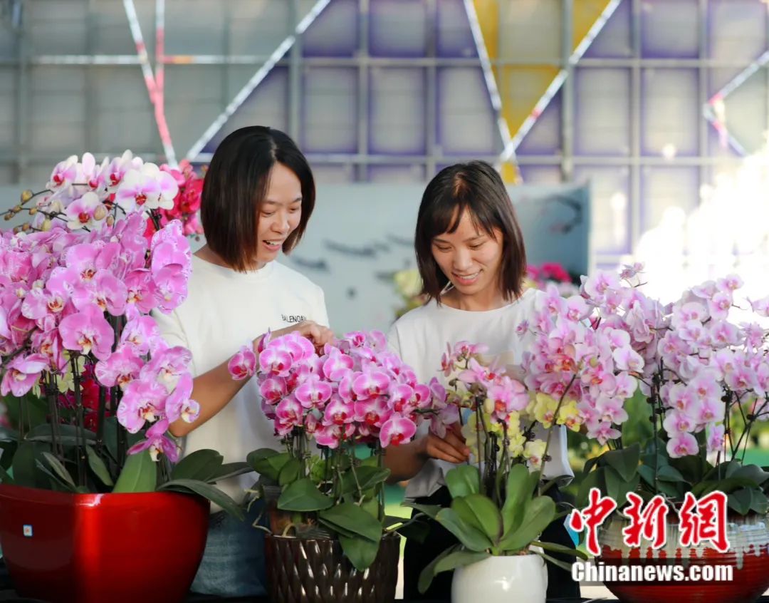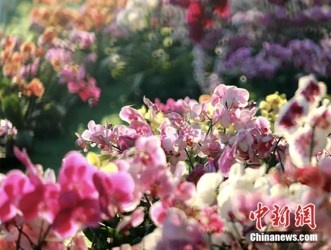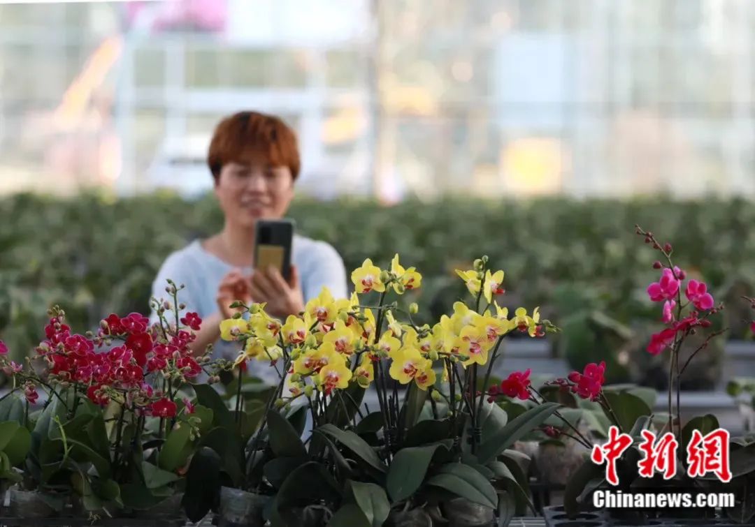 32萬(wàn)平方米的溫室大棚內(nèi),不同品種的蘭花競(jìng)相開放,形成一片蔚為壯觀的蘭花海洋。