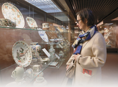 陶瓷收藏館展廳內(nèi),一架以“葡萄牙藍(lán)”瓷板畫藝術(shù)形式制作的小提琴最為精致奪目。這件藏品由捷克藝術(shù)家瓦茨拉夫·奇夫卡制作,小提琴外表突出還原了瓷板畫的光澤和色彩,同時(shí)兼具中國青花瓷的藝術(shù)神韻。彼時(shí)歐洲人尚在探索制瓷工藝,其創(chuàng)作方法、使用材料和圖形模式與中國雖有所不同,但一件件精美的瓷器制品依然能令我們看出當(dāng)時(shí)歐洲工匠的精致技藝,以及中國傳統(tǒng)藝術(shù)風(fēng)格在當(dāng)?shù)氐逆幼儼l(fā)展,這些瓷器堪稱中葡藝術(shù)風(fēng)格相互融合的產(chǎn)物,也是海上絲綢之路互聯(lián)互通的結(jié)晶。