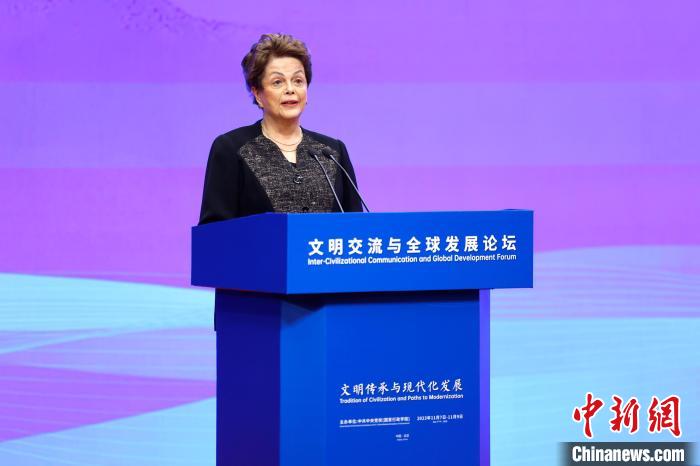 11月7日,由中共中央黨校(國家行政學(xué)院)主辦的文明交流與全球發(fā)展論壇在京開幕。圖為新開發(fā)銀行行長羅塞夫作主旨演講。富田 攝
