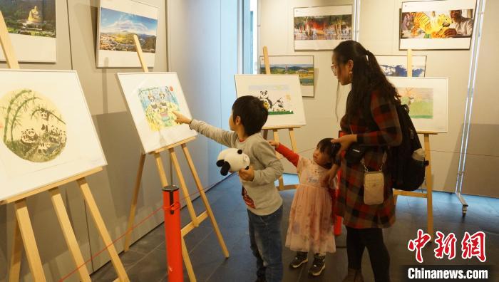 圖為觀眾及小朋友欣賞獲獎(jiǎng)作品展。柏林中國文化中心供圖