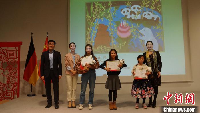 圖為頒獎(jiǎng)嘉賓與一等獎(jiǎng)獲得者合影。柏林中國文化中心供圖。
