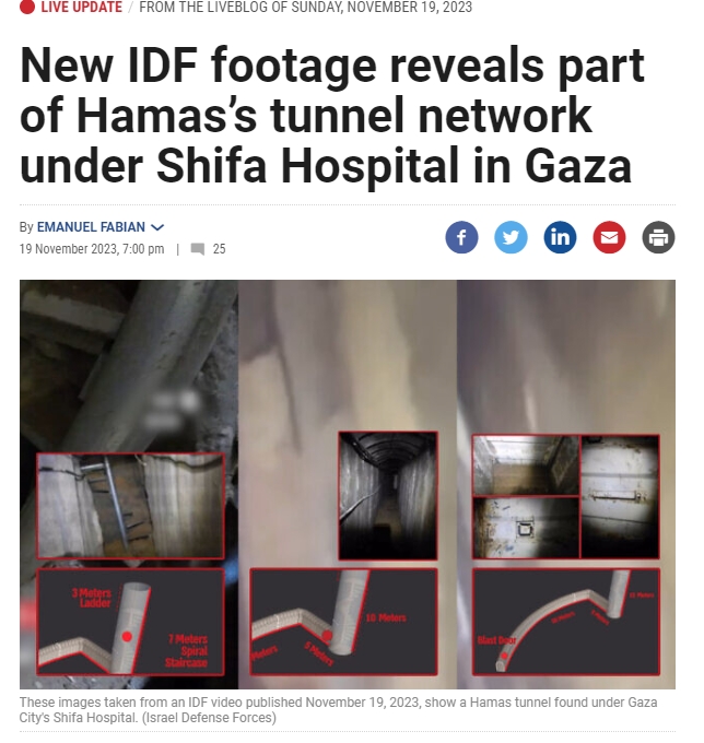 中新網(wǎng)11月20日電 據(jù)《以色列時報》報道,當(dāng)?shù)貢r間19日,以色列國防軍和以色列國家安全總局(辛貝特)發(fā)布了最新視頻,視頻顯示了巴勒斯坦伊斯蘭抵抗運(yùn)動(哈馬斯)在加沙希法醫(yī)院下方的部分隧道網(wǎng)絡(luò)。以軍稱哈馬斯在該醫(yī)院設(shè)有一個主要指揮中心。