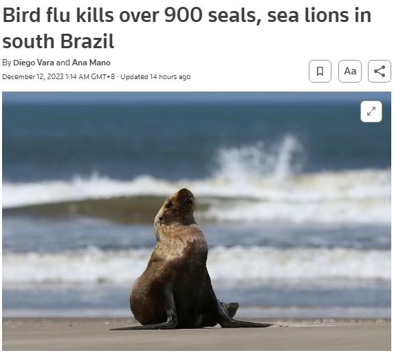 報道稱,高致病性禽流感病毒也在其他動物種群中傳播,包括海鳥、海豹和海獅等動物。巴西當局收集了海灘上死去的鼠海豚和企鵝的尸體樣本,但檢測結(jié)果尚未得出。