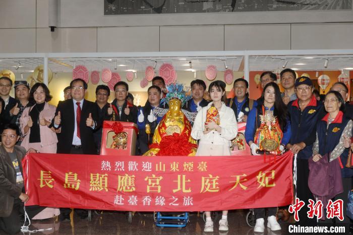 中新社臺(tái)北12月12日電 (記者 陳小愿)山東煙臺(tái)長(zhǎng)島顯應(yīng)宮宋代銅身媽祖“北庭天妃”12日抵達(dá)臺(tái)灣桃園機(jī)場(chǎng),將前往新北、臺(tái)北等多個(gè)縣市的16個(gè)宮廟巡安、探親。