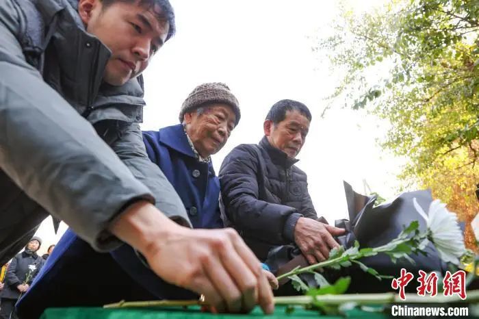 今年南京大屠殺死難者國家公祭日前夕,在侵華日軍南京大屠殺遇難同胞紀念館遇難者名單墻前,艾義英獻花時幾度哽咽,“我年紀大了,以后不一定能來了,我來不了,下一代會代我來,一直都會來?!?/p>