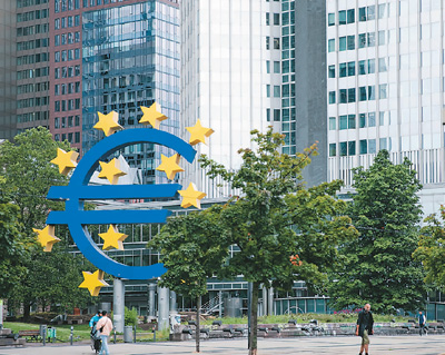 歐元由歐洲中央銀行(歐央行)和各歐元區(qū)國家的中央銀行組成的歐洲中央銀行系統(tǒng)負責管理??偛孔溆诘聡ㄌm克福的歐央行有獨立制定貨幣政策的權力。自1999年至2008年國際金融危機爆發(fā)前,歐央行貨幣政策較好實現(xiàn)了價格穩(wěn)定目標,將歐元區(qū)實際通脹率穩(wěn)定在2%左右,有力促進了歐洲經(jīng)濟發(fā)展。