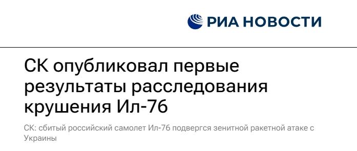 俄羅斯偵查委員會在聲明中表示,正在對機身碎片等物體進行專業(yè)鑒定,同時詢問事件目擊者并繼續(xù)進行現(xiàn)場調(diào)查。根據(jù)初步調(diào)查結(jié)果,可以確定伊爾-76運輸機遭到了來自烏克蘭境內(nèi)的防空導(dǎo)彈襲擊。