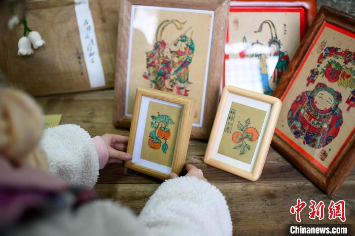 2月6日,國家級非遺梁平木版年畫推出相框版的《柿柿如意》?! ≈行律缬浾?何蓬磊 攝