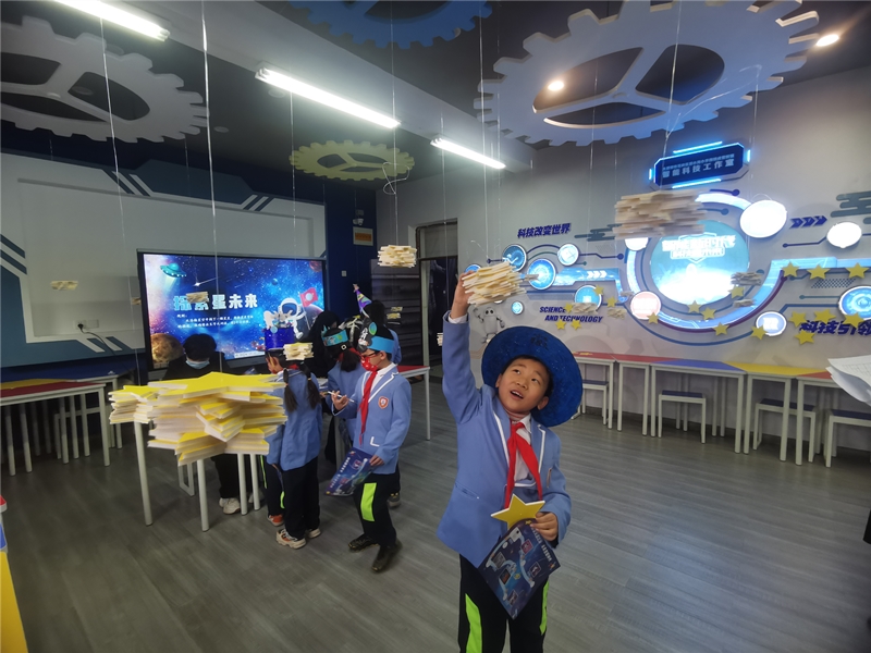 為進一步減輕學生的課業(yè)負擔,更好地促進學生們的全面發(fā)展,該校變“常規(guī)考試”為“學科素養(yǎng)考核”,學業(yè)評價借助“天宮之旅”項目式研學的形式進行,圍繞語文、數學、英語、體育、音樂、科學、美術七門學科,分一、二年級設置了“天宮生活艙”“探索星未來”“星球對對碰”“太空加油站”等“關卡”,學生們通過“闖關”既鞏固了知識,又提高了學習興趣。