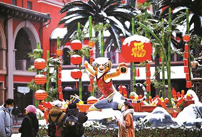 遍布園區(qū)的新春主題裝飾、全新推出的新春主題娛樂演出、充滿“年味”的限定美食……昨日,在紛紛揚(yáng)揚(yáng)的雪花中,北京環(huán)球度假區(qū)開啟了首個“環(huán)球中國年”季節(jié)性主題活動。即日起至2月20日,帶有春節(jié)特色的全新娛樂體驗(yàn)將伴隨游客一起辭舊迎新,共同迎接虎年春節(jié)的到來。