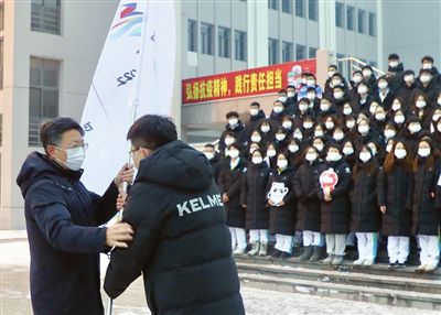 1月23日早7時(shí)許,河北工業(yè)大學(xué)舉行冬奧志愿者出征儀式,227名師生志愿者在國旗下莊嚴(yán)宣誓:“志愿青春,冬奧有我!”