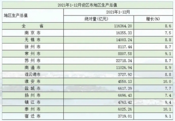 從目前國內(nèi)已公布 2021年經(jīng)濟(jì)數(shù)據(jù)的省市來看,去年經(jīng)濟(jì)總量前五名基本確定,分別為廣東、江蘇、山東、浙江、河南。江蘇以116364.2億元位列第二,邁上11萬億元新臺(tái)階。根據(jù)地區(qū)生產(chǎn)總值統(tǒng)一核算結(jié)果,2021年江蘇全省實(shí)現(xiàn)生產(chǎn)總值116364.2億元,按不變價(jià)格計(jì)算,比上年增長8.6%,兩年平均增長6.1%。