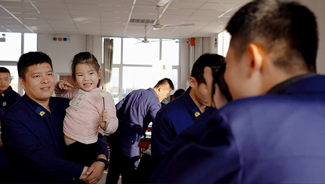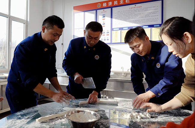 室外寒氣襲人,室內(nèi)溫暖四溢,其樂(lè)融融,消防救援人員及家屬在消防站貼窗花、掛燈籠……參觀中,孩子們稚嫩的聲音回蕩在消防站中,增添了一絲童趣;包水餃環(huán)節(jié),大家分工協(xié)作,你搟皮,我包餡,氣氛和諧,洋溢著“家”的味道,讓這個(gè)冬天情意滿(mǎn)滿(mǎn)。吃餃子、話(huà)家常,應(yīng)和著這溫暖的氛圍,大家圍坐在一起感受著濃濃的年味,昔日嚴(yán)肅的食堂充斥著歡聲笑語(yǔ)。在場(chǎng)一位消防救援人員的家屬表示:“孩子爸爸平時(shí)回家少,工作環(huán)境又比較危險(xiǎn),作為家屬我們能做的就是全力支持他們的工作,今天來(lái)隊(duì)參觀對(duì)他平時(shí)的工作也多了一分了解,以后我會(huì)更加支持他的!”