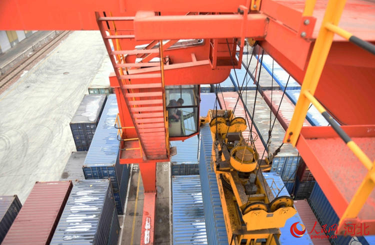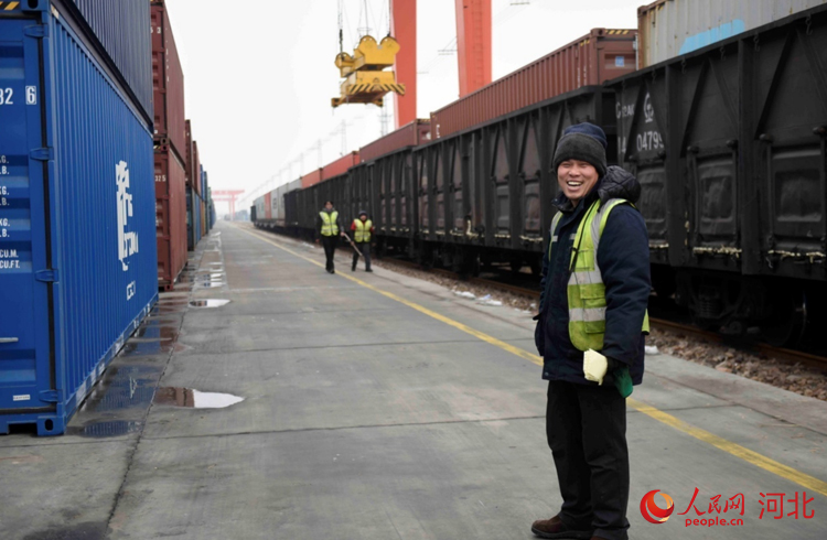 人民網(wǎng)石家莊2月2日電 (祝龍超)“再往前一點(diǎn),右邊一點(diǎn),好的?!?月2日9點(diǎn),在地面作業(yè)人員的配合下,坐在30多米龍門(mén)吊駕駛室的滑恒旭穩(wěn)穩(wěn)地操作著龍門(mén)吊車(chē)將一個(gè)20多噸的集裝箱放到了貨運(yùn)專(zhuān)列上。