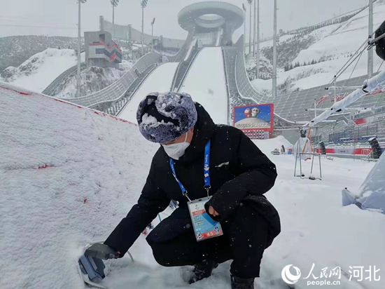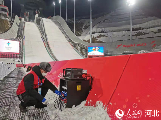 國家跳臺滑雪中心電力保障團(tuán)隊(duì)在賽事后檢查用電設(shè)備。 韓寶喜攝