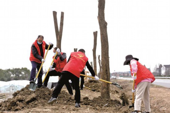 3月10日上午,嘉興秀洲區(qū)組織機關干部和志愿者開展義務植樹活動,大家用實際行動扮靚家園。(馮玉坤)