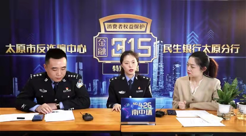 人民網(wǎng)太原3月15日電 為進(jìn)一步增強(qiáng)人民群眾防范電信網(wǎng)絡(luò)詐騙意識(shí),發(fā)揮公安機(jī)關(guān)和金融行業(yè)的宣傳合力,3月15日下午,太原市反詐騙中心與民生銀行太原分行聯(lián)合開展了“3·15”專題防范電信網(wǎng)絡(luò)詐騙直播活動(dòng),為廣大群眾帶來(lái)了滿滿的防詐騙“干貨”。