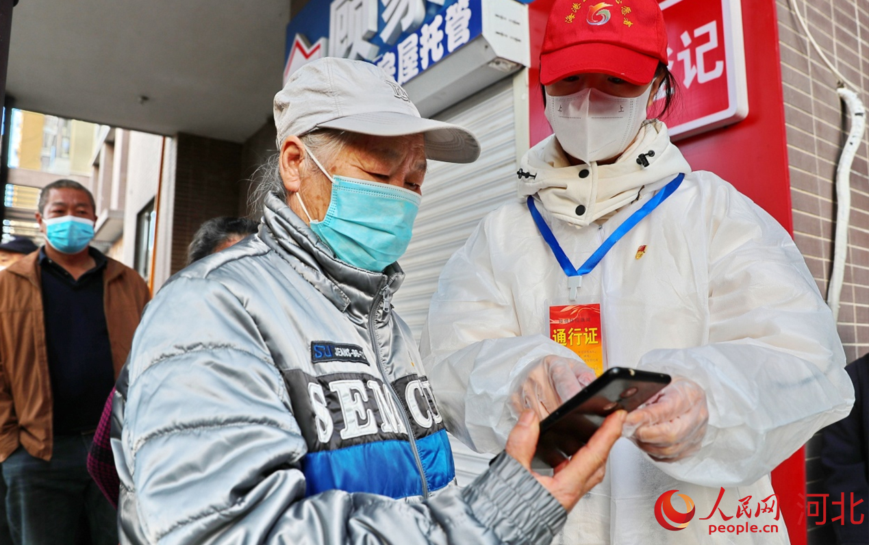 人民網(wǎng)石家莊3月27日電 “打開電子健康碼。”“保持好1米距離?!薄?月25日上午9點,在河北秦皇島市海港區(qū)森林逸城小區(qū),秦皇島市委組織部黨員先鋒隊隊員董菁正在組織居民有序排隊做核酸檢測,提醒大家準(zhǔn)備好電子健康碼,耐心指導(dǎo)不熟悉操作流程的居民。